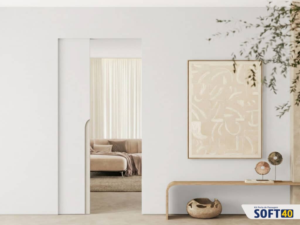 O Soft 40 suporta até 40 kg e é ideal para portas mais leves, utilizadas para dividir ambientes menores, como despensas e lavanderias. Seu carro possui quatro rodas silenciosas que proporcionam suavidade no amortecimento. É indicado para projetos residenciais focados em custo-benefício.
